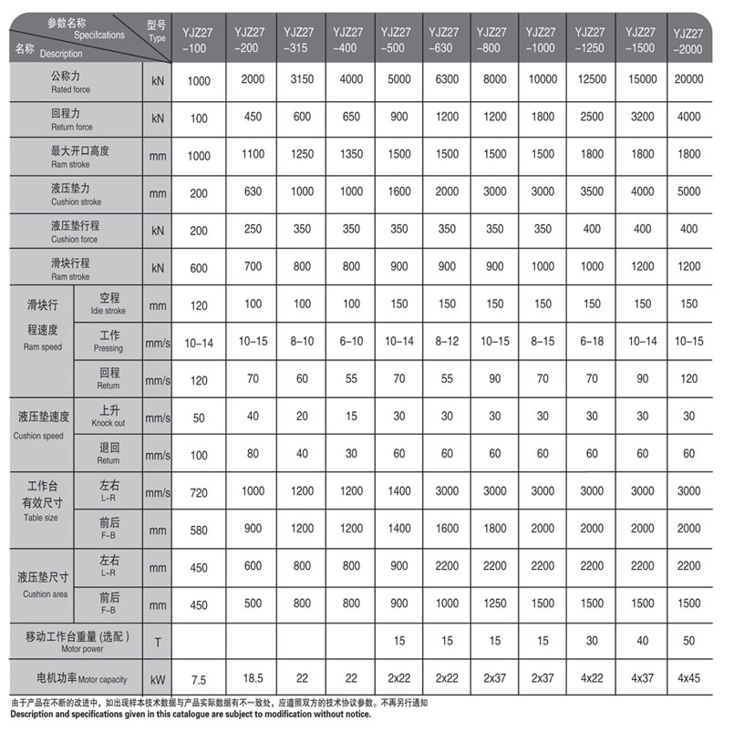 YJZ27-系列四柱式單動薄板拉伸液壓機